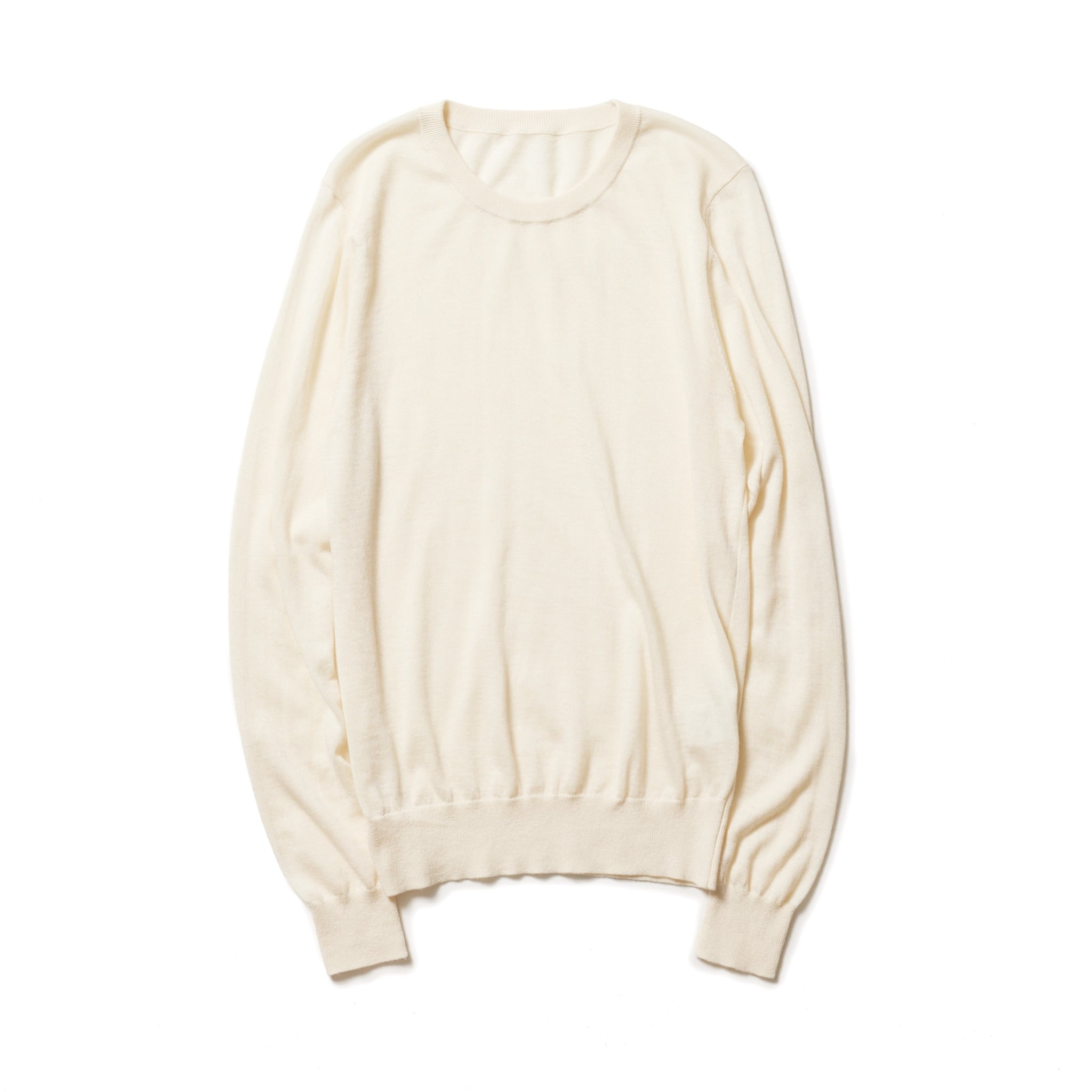 カシミヤシルク 平編みクルーネック長袖ニット(2サイズ・3色展開)