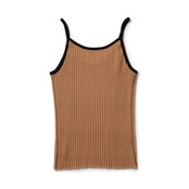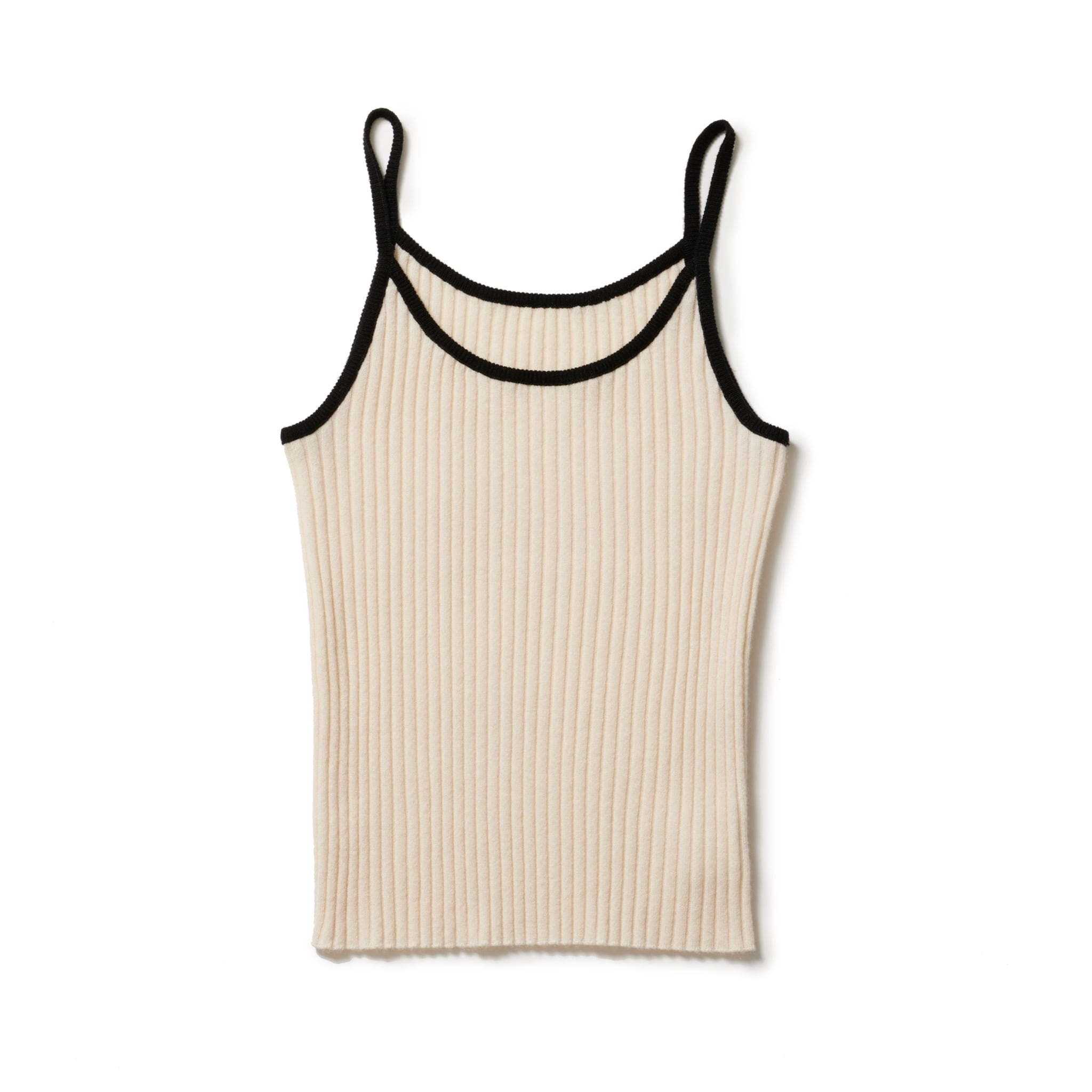 こちらは体にフィットするキャミソールのサイズ感ではないので、ベストのようにレイヤード仕様でお召しいただきたいです。(例えば、お手持ちのリブスキッパーニットやリブタートルニットの上から重ねると今年はまた違ったコーディネートをお楽しみいただけます)