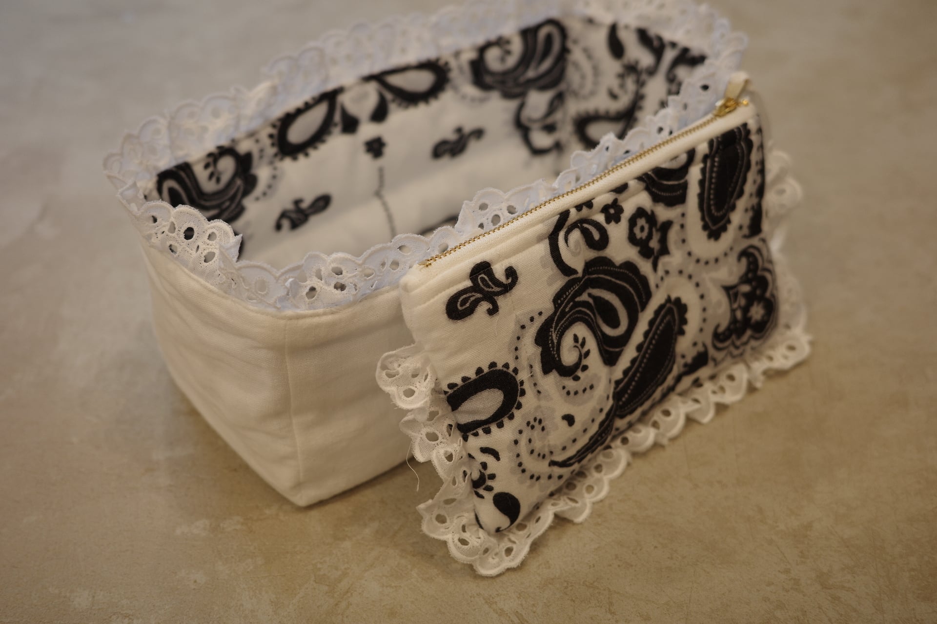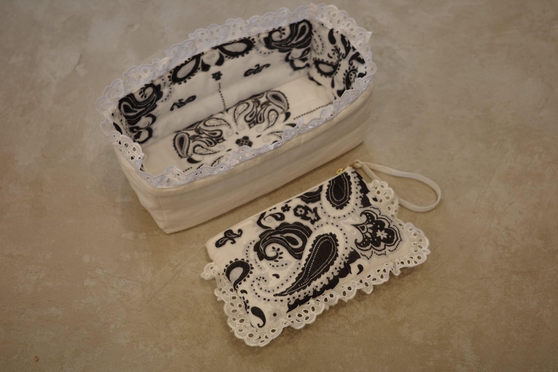 ポーチもガーゼ生地のキルティングにガーゼ生地を重ねた構造になっているので、ジュエリーケースとしてもお使いいただけます。