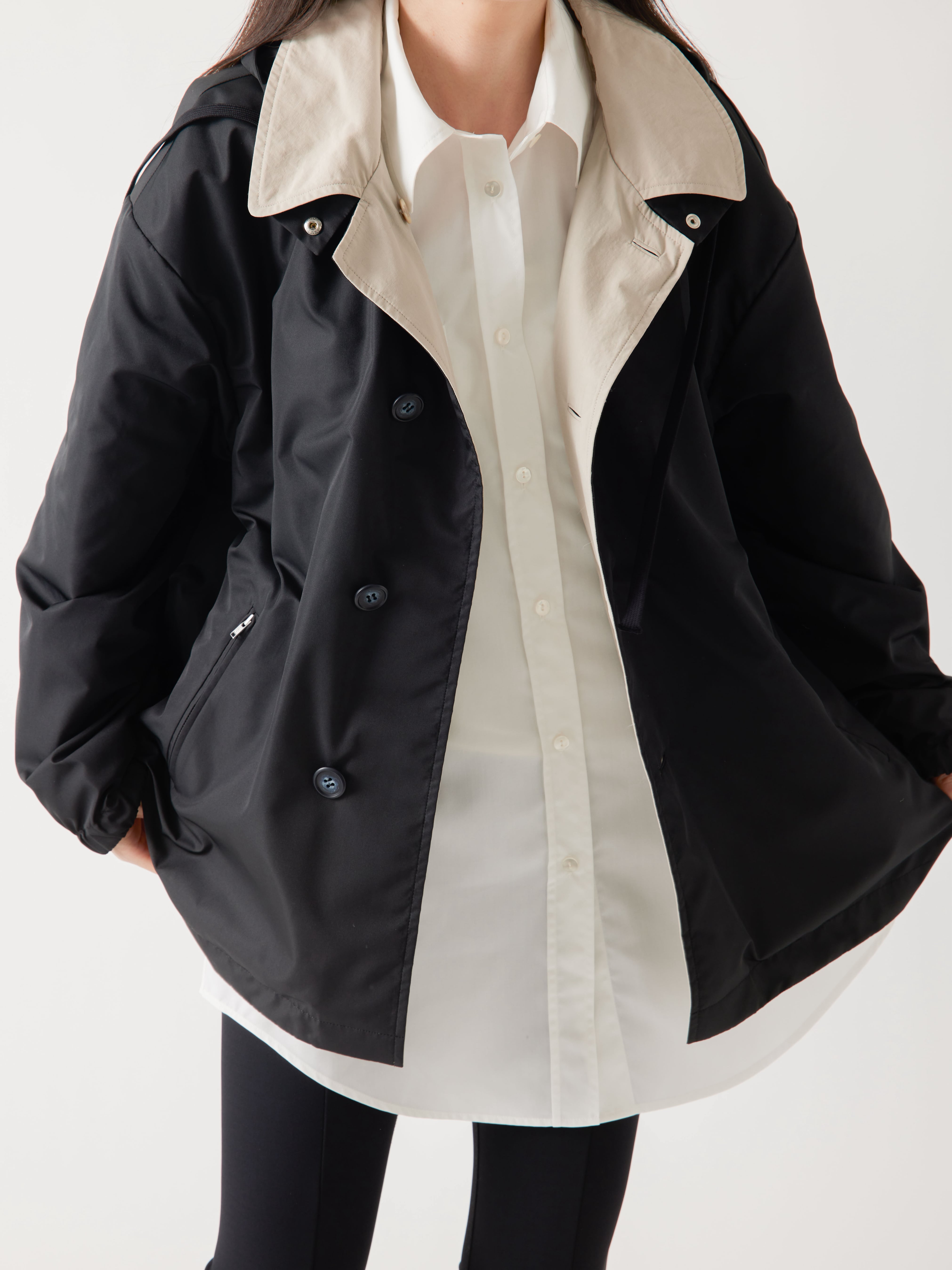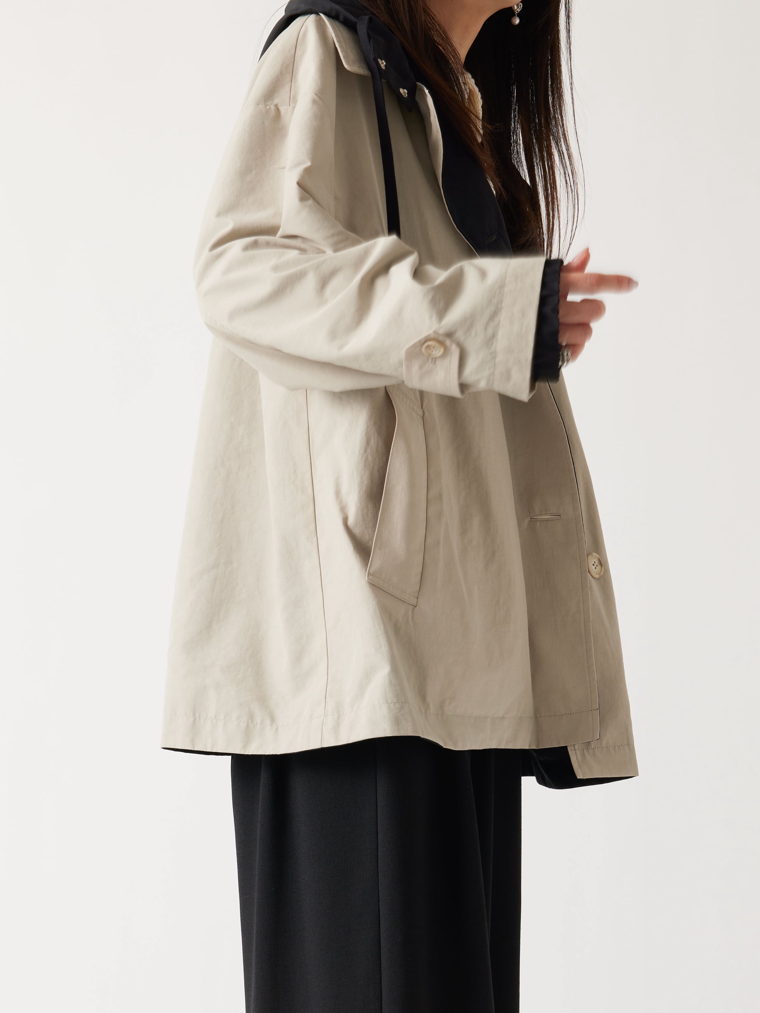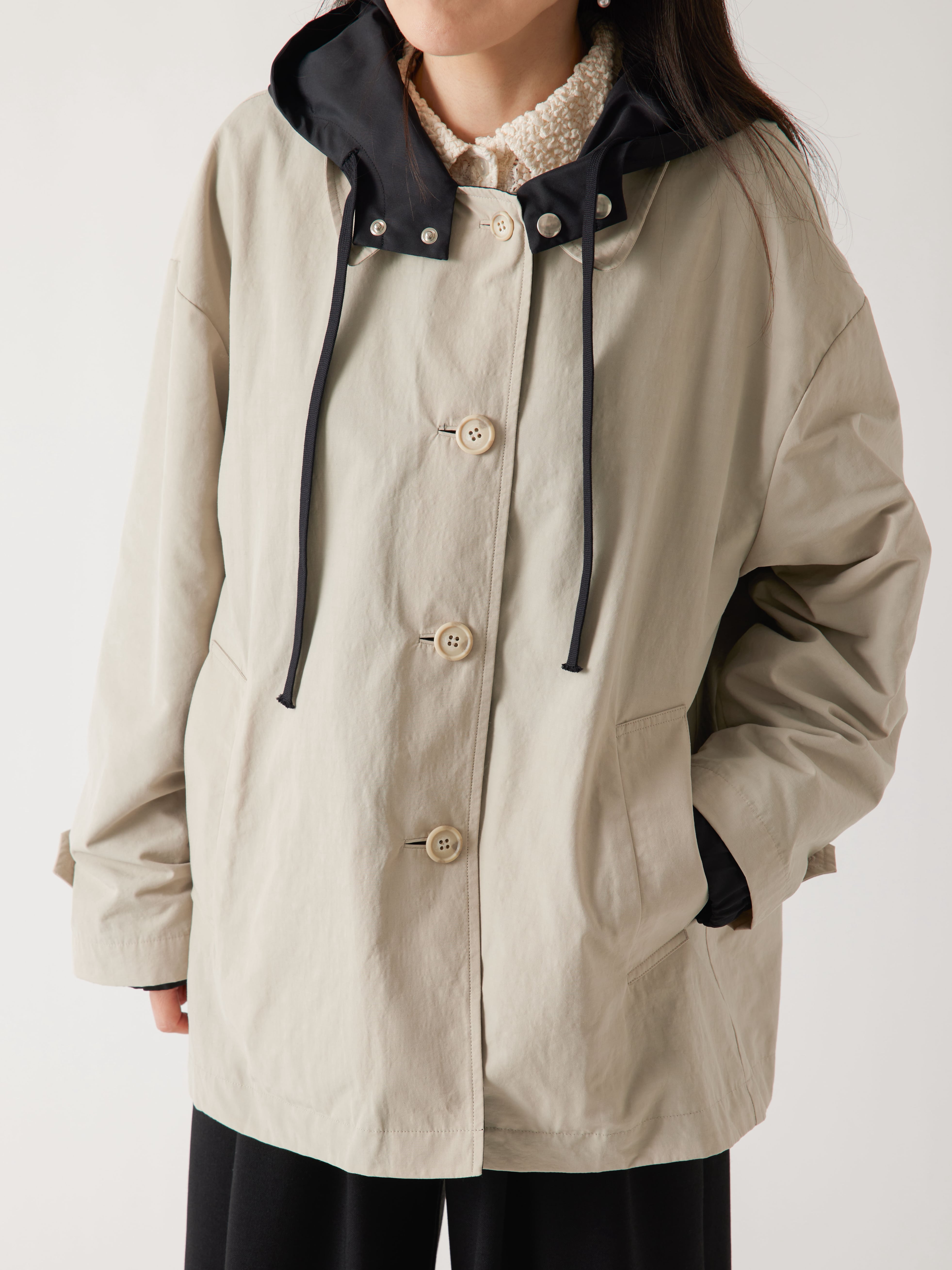 コーディネートに合わせてトレンチ風にも、ジャンパー風にもお楽しみいただけます。