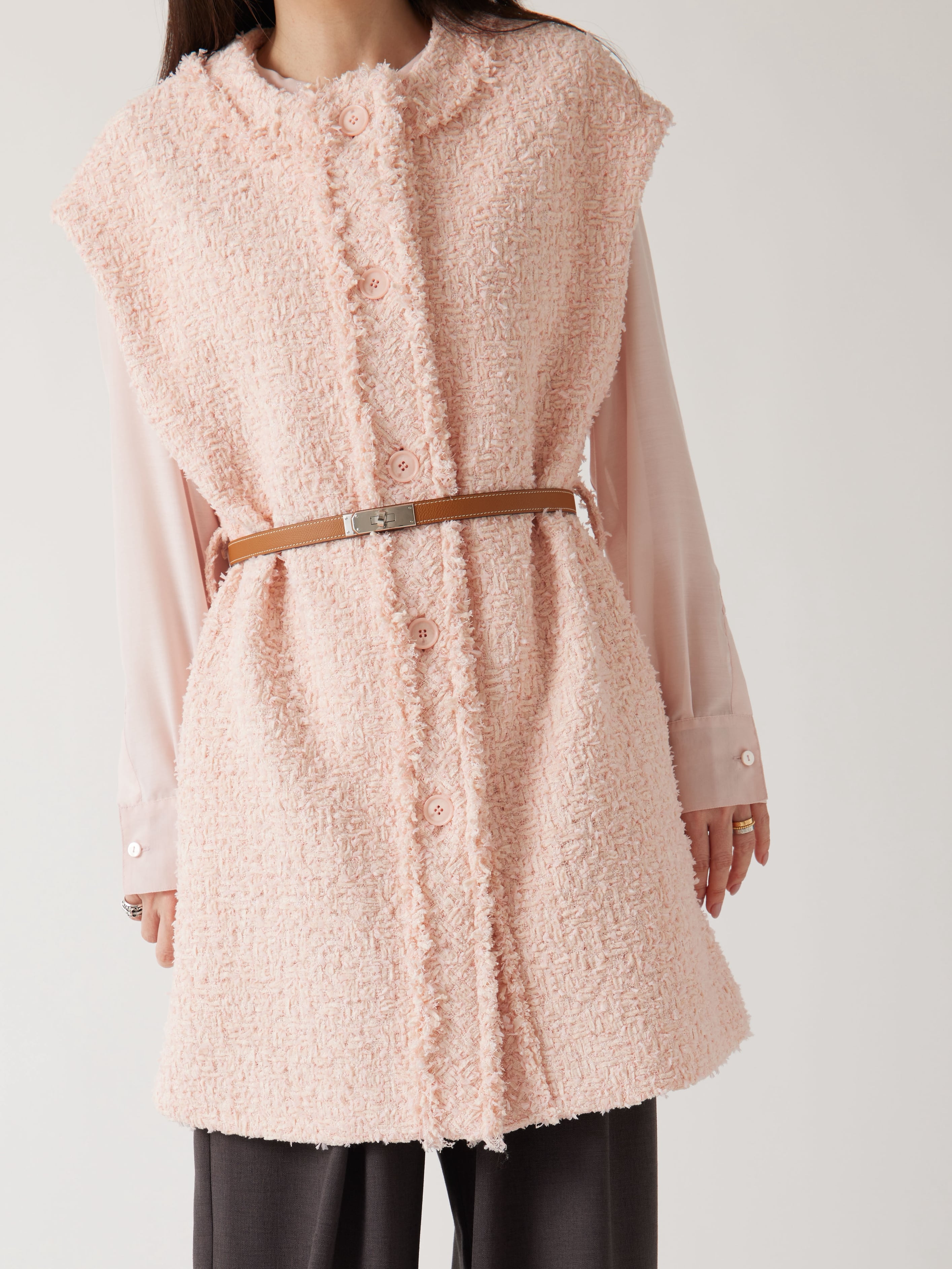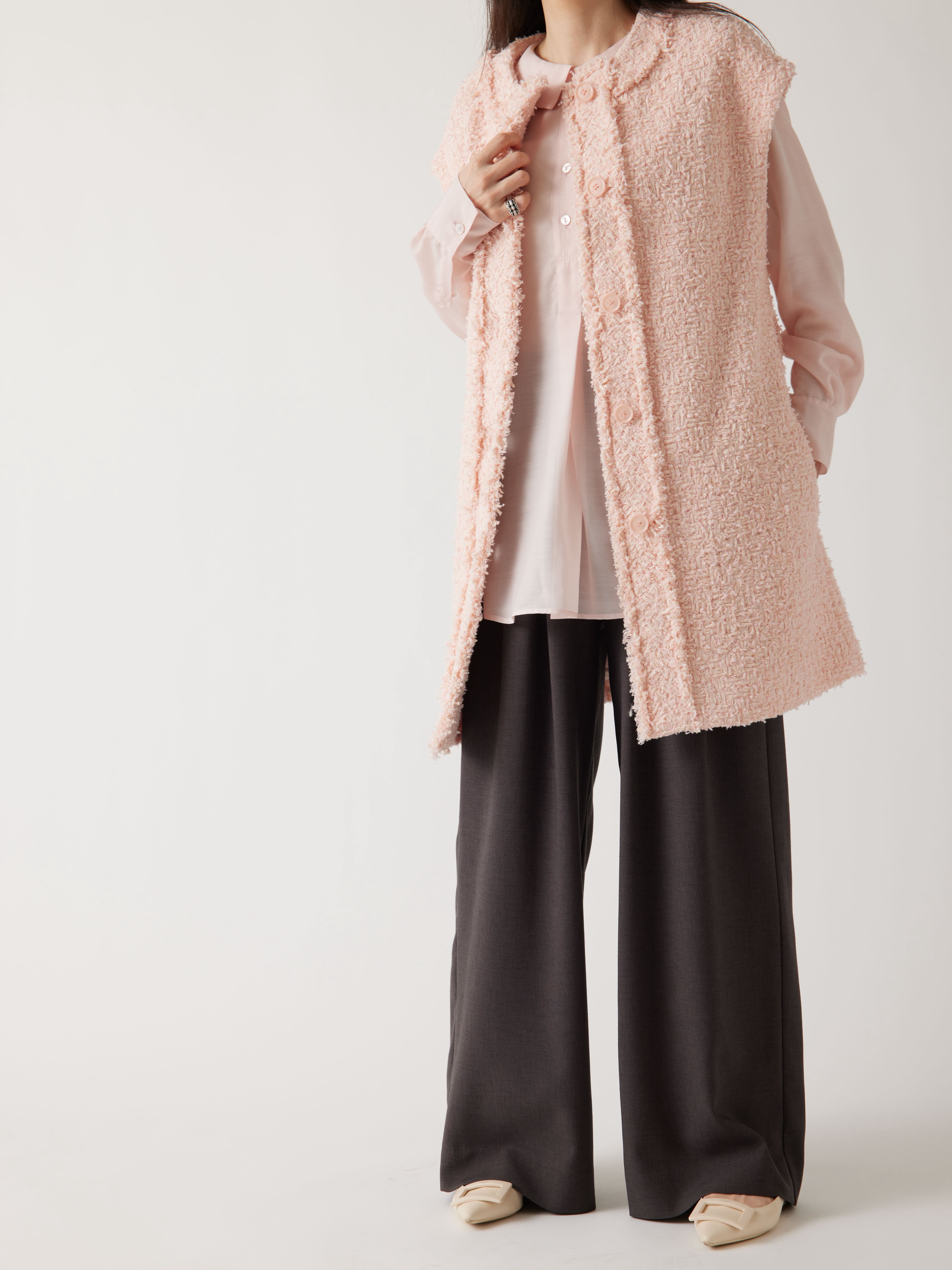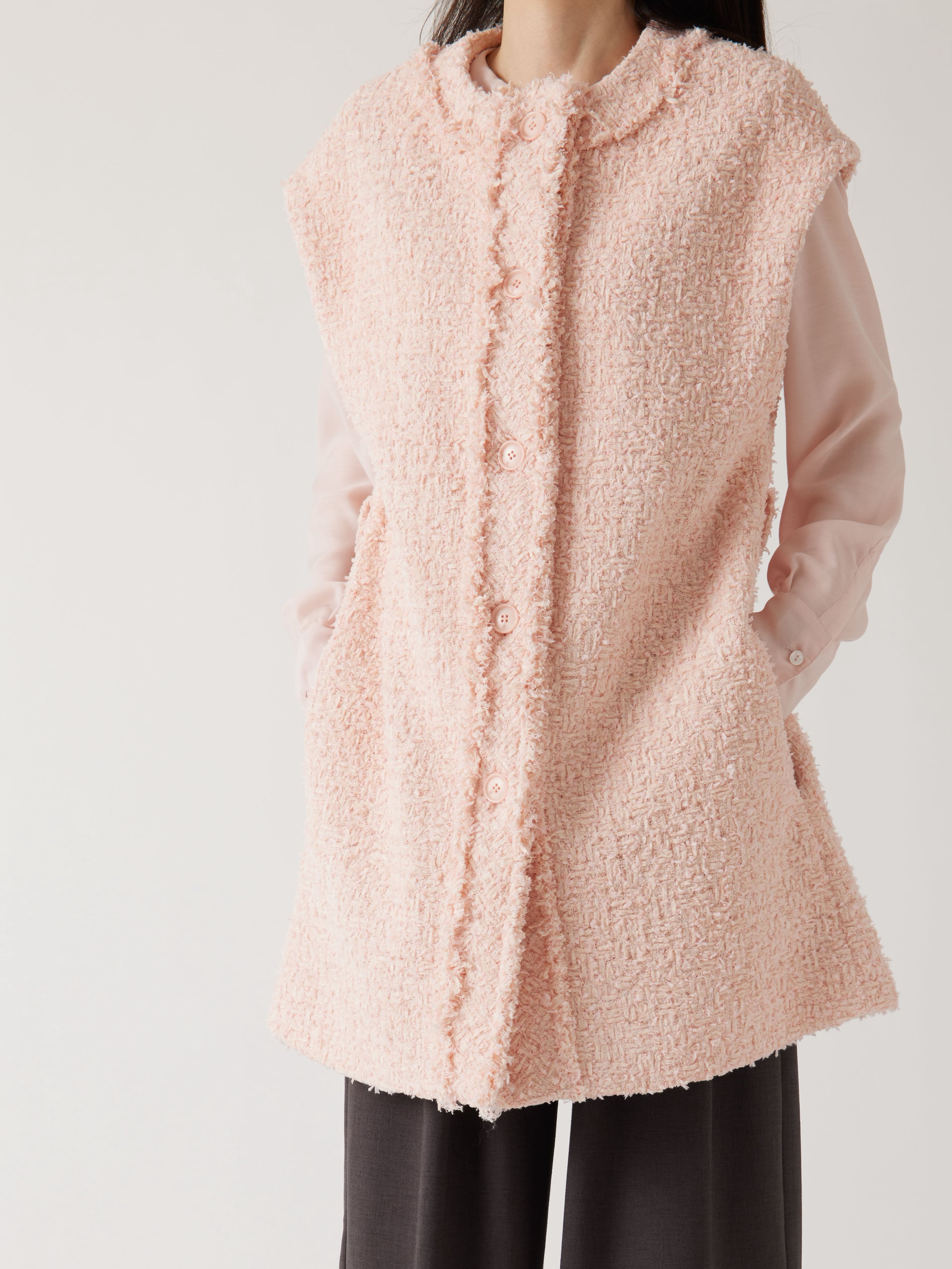 軽やかでしなやかなツイード生地を使用したロングジレです。